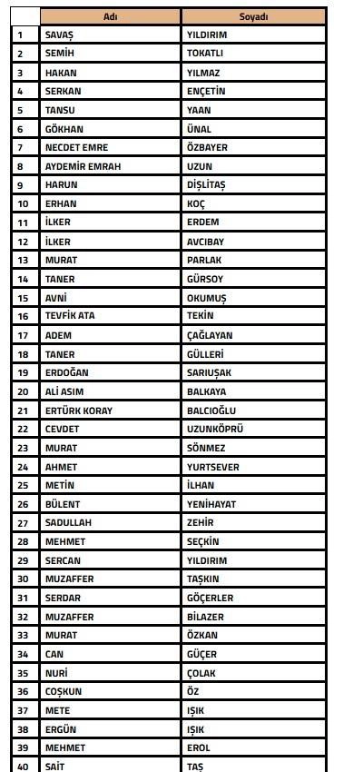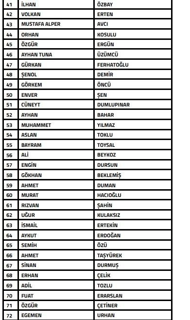 Söz konusu açıklanan listede Cenk Ergün, Necdet Ergezen, Gökhan Ünal, İlker Avcıbay, Taner Gülleri, Sercan Yıldırım, Cüneyt Dumlupınar ve Mehmet Altıparmak'ın da olduğu görüldü.