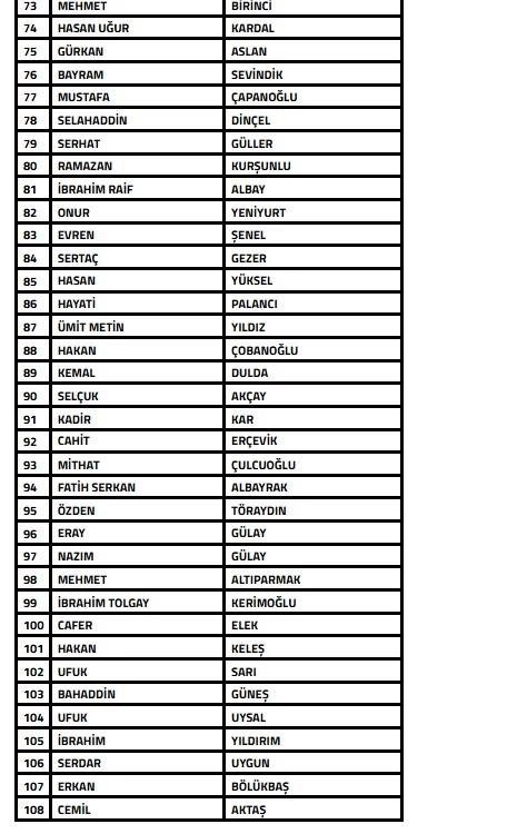 İşte 108 ismin yer aldığı o liste: