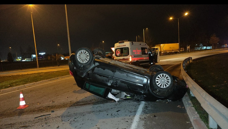 Kaza sonrası ters dönen araçta maddi hasar oluştu. İhbar üzerine bölgeye sağlık ve polis ekipleri sevk edildi. Sağlık ekipleri sürücünün durumunu kontrol etmek istedi ancak Sefa S. ambulansa binmeyi reddetti.