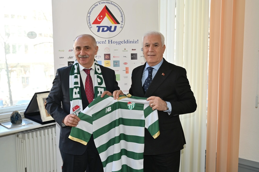 ITB Berlin 2026’da Bursa Büyükşehir Belediyesi’nin standı da büyük ilgi gördü. ‘Her Gülümseme Bir Hikâye Anlatır’ kampanyasıyla organizasyonda yer alan Bursa Büyükşehir Belediye Başkanı Mustafa Bozbey’in liderliğindeki heyet, 3-5 Mart tarihleri arasında yerli ve yabancı sektör temsilcileriyle bir araya gelerek Bursa’nın turizm potansiyelini anlattı. Fuardaki diğer firmaların stantlarını da gezen Başkan Mustafa Bozbey, birebir görüşmeler gerçekleştirerek yapılabilecek iş birliklerini konuştu. Türk-Alman Ticaret ve Sanayi Odası Genel Sekreteri Okan Özoğul’u ve Türk-Alman İşverenler Derneği Başkanı Remzi Kaplan’ı da ziyaret eden Başkan Mustafa Bozbey, yapılabilecek iş birlikleri hakkında fikir alışverişinde bulunurken Bursaspor forması ve atkısı hediye etti.