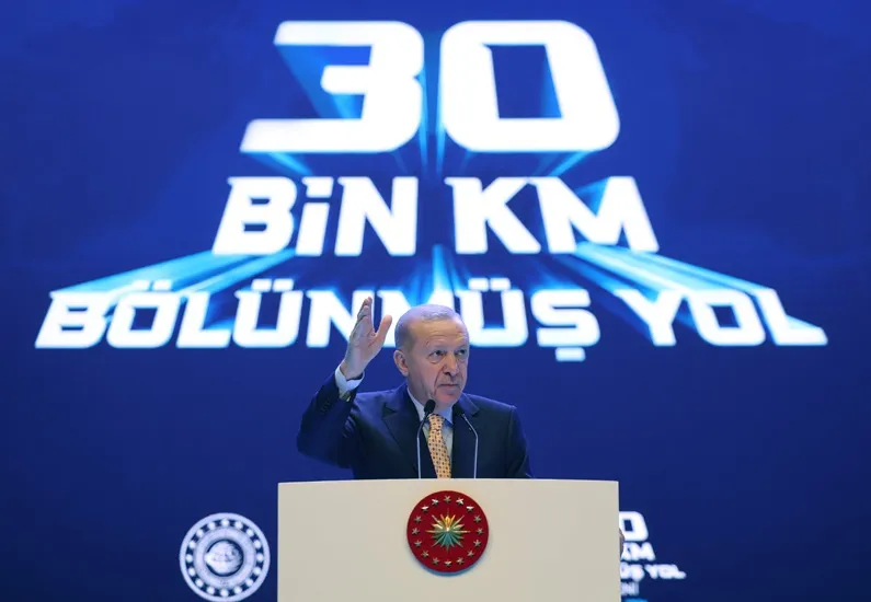 Sadece milleti dinlediklerini, ona hizmet etmeye odaklandıklarını ve bölünmüş yol projesini başlattıklarını anlatan Cumhurbaşkanı Erdoğan, "Israrla devam ettirdiğimiz bu projede hamdolsun 30 bin kilometreyi aştık. Ne dedik? 'Yol medeniyettir' diyerek yeni yollar yaptık, emniyetli, rahat ve hızlı ulaşımın önünü açtık. 'Yol ver dağlar, yol ver bana. Yollar seni gide gide usandım' diye türküler yakan milletimizin yol mahrumiyeti çektiği o kötü günleri tarihin tozlu raflarına kaldırdık" dedi.