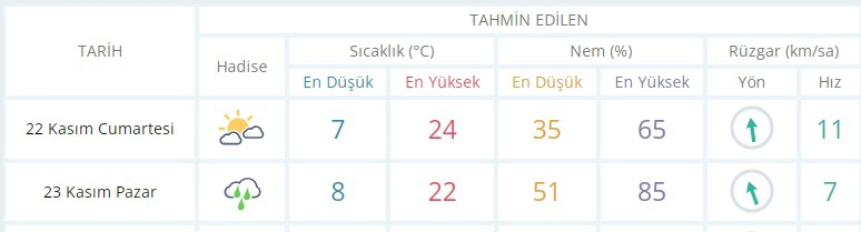 Pazar günü ise meteoroloji verilerine göre yağış geçişleri bekleniyor. Termometreler en düşük 8, en yüksek 22 dereceyi gösterecek.