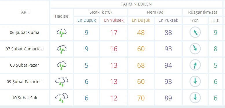 Cumartesi günü gündüz sıcaklığı 16, pazar günü 13 derece olacak.
