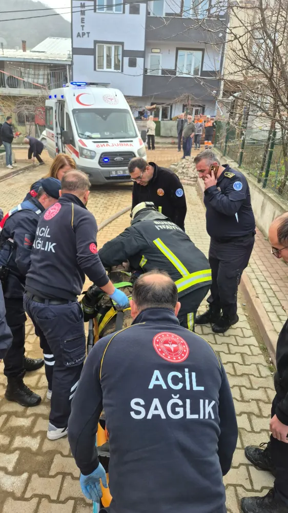 Yangına müdahale eden itfaiye personeli Hasan Can T. (30), çalışmalar sırasında yaklaşık 2,5 metre yükseklikten beton zemine düşerek yaralandı.