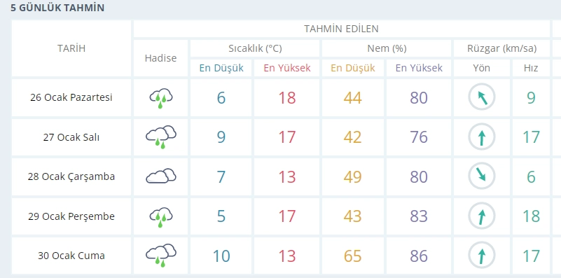 Perşembe günü yağışlı hava etkisini yeniden gösterecek. En düşük sıcaklık 5, en yüksek sıcaklık 17 derece.