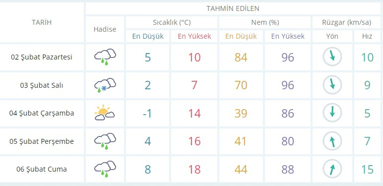 Perşembe ve Cuma yağışlı hava dalgası şehirde etkili olmaya devam edecek. Perşembe günü termometreler 16, Cuma günü ise 18 dereceye kadar yükselecek.