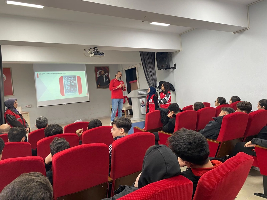 Okul Müdürü Talip Yediyıldız ve Müdür Yardımcısı Caner Özer’in destekleriyle gerçekleştirilen etkinlik kapsamında, İnegöl Kızılay Başkanı Alay Ergin ile gönüllü olarak görev yapan Kızılay çalışanları okula davet edildi. Programda öğrencilere Kızılay’ın yürüttüğü insani yardım faaliyetleri hakkında bilgi verilirken, öğrencilerin merak ettiği sorular da yanıtlandı.