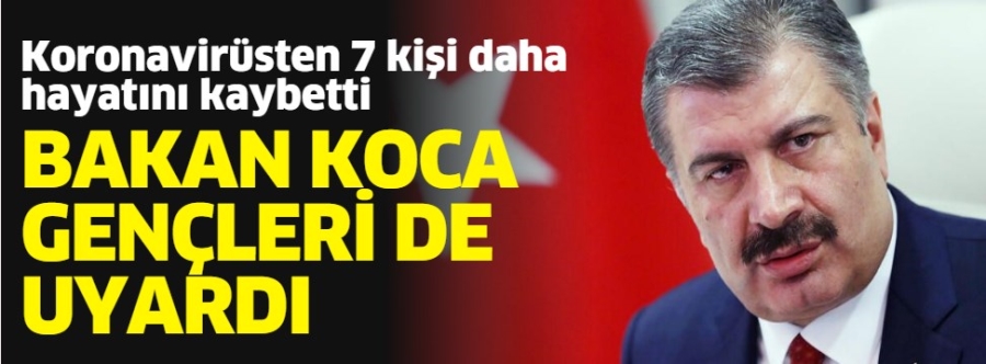 Koca, yaptığı paylaşımda, "Son 24 saatte 3.672 test sonuçlandı. 293 yeni tanı kondu. Çabalarımıza rağmen, hastalığa yenik düşen 7 insanımız daha oldu. Gençlere uyarımız var: Salgının dışında değilsiniz. Hayatınızı yavaşlatın. Risk ortamına girmeyin. Riski evinize taşımayın. Evde kalın. Hayat eve sığar" ifadelerine yer verdi.