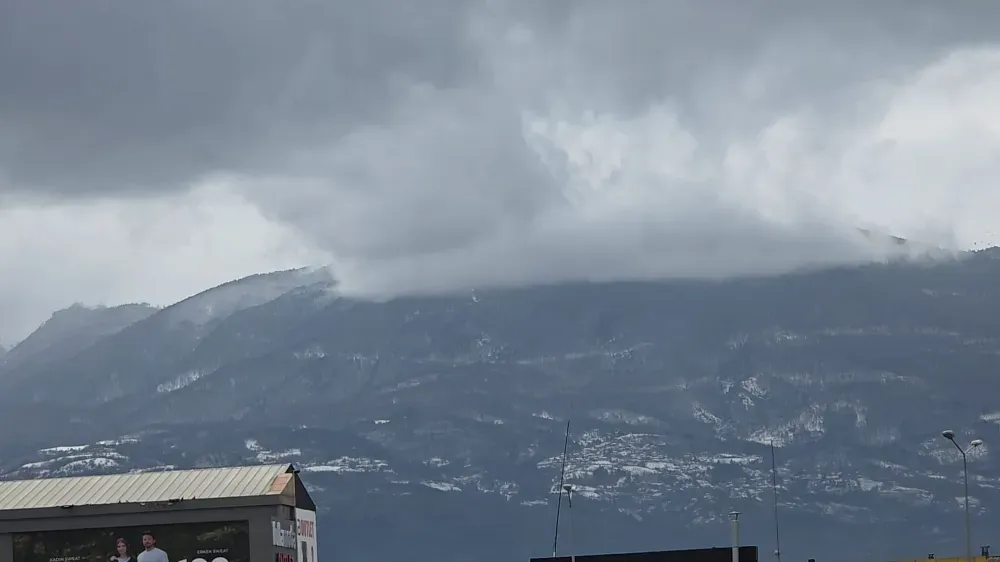 İnegöl’den Uludağ’a bakan yamaçlar, yoğun bulut örtüsüyle birlikte etkileyici bir manzaraya sahne oldu. Zirveye doğru ilerleyen koyu bulutlar, Uludağ’ın eteklerini adeta bir perde gibi kaplarken, yüksek kesimlerde yer yer kar örtüsü dikkat çekti.