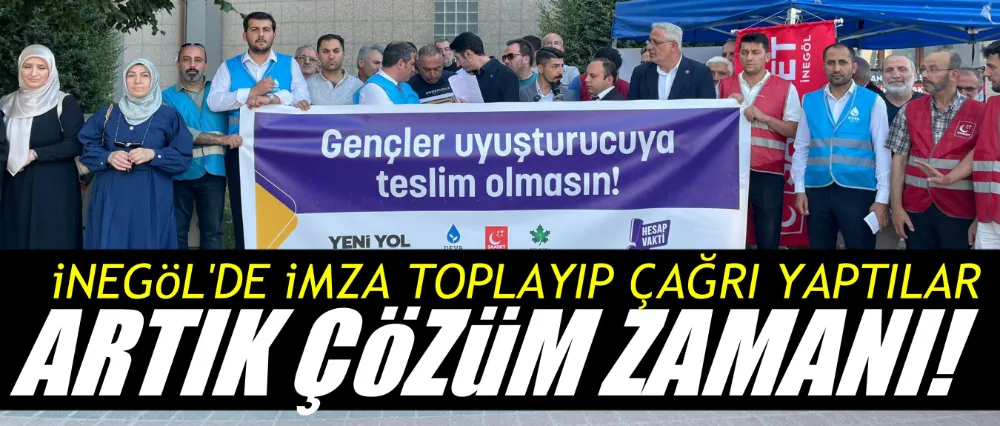 "Uyuşturucuya Sessiz Kalanlara Karşı Vatandaşın Hesabı Var" sloganıyla başlatılan kampanya kapsamında İnegöl'de de imza toplandı.